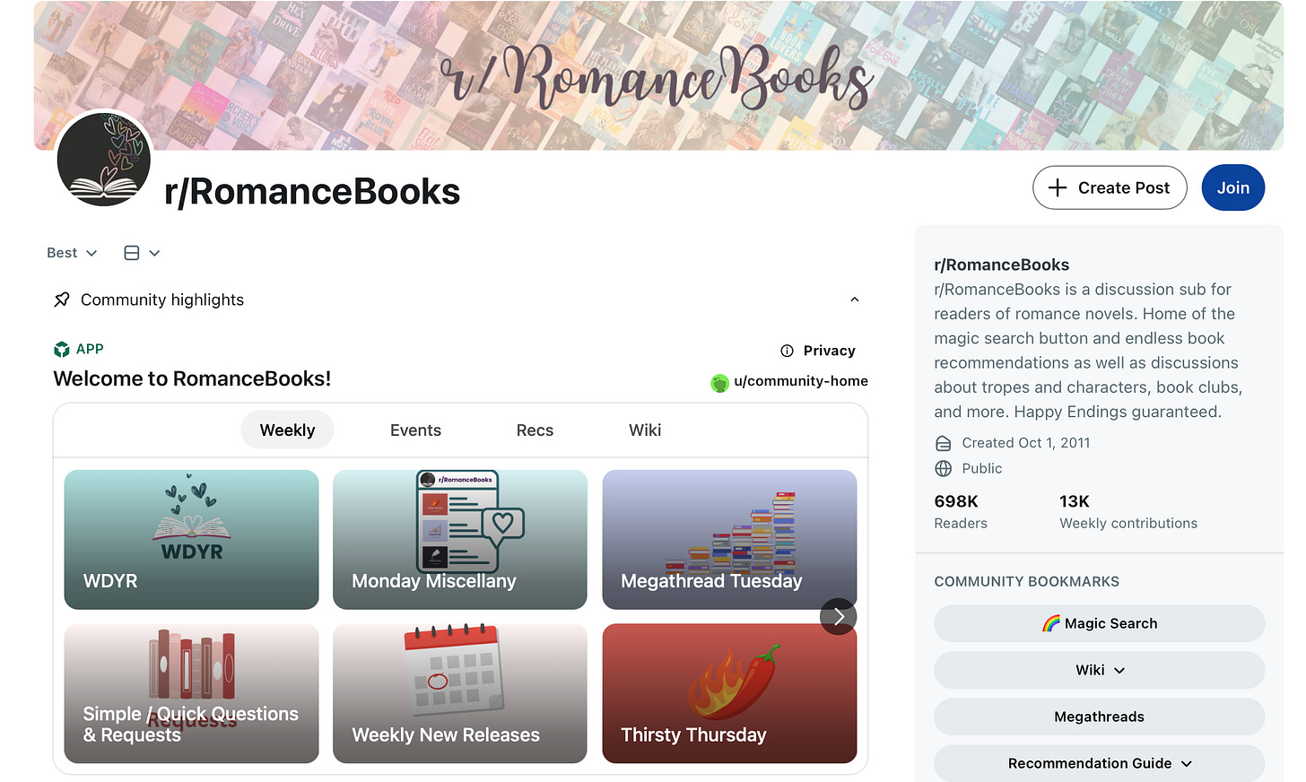 Imagine a Gay Romance author hosting an AMA in a trope-specific subreddit, or a Fantasy author doing a deep dive into their world-building for a community of dragon-obsessed readers. For example, I found this sub reddit for romance books with 698K readers and 13K weekly contributors. The potential for community-first marketing here is huge, but it requires authors to actually be part of the community, not just drop a link and run. I’m curious how else readers, authors, and publishers can use reddit to connect with these audiences and build community and trust.
